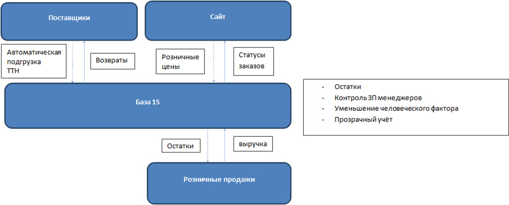 Учет магазина автозапчастей на базе 1С интегрируется также и с интернет-магазинами. Мы готовы внедрить программу учета для интернет-магазина автозапчастей в Беларуси. Имеется опыт настройки обновления остатков базы автозапчастей с популярными CMS: