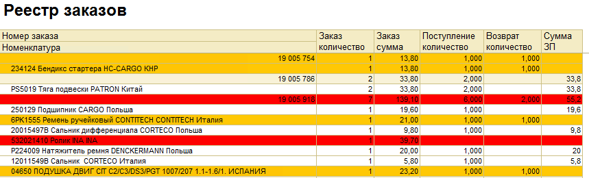 Отчёт по зарплате менеджеров показывает сумму реально реализованного товара, без учёта не приехавшего и возвратов.